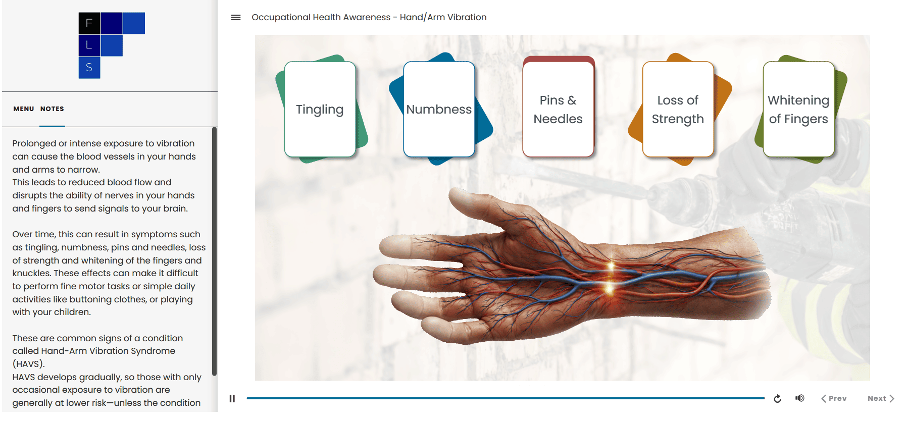 In this course, we’ll explore how frequent and intense exposure to vibration can affect your hands and arms. You’ll learn about conditions like Hand-Arm Vibration Syndrome (HAVS) and Carpal Tunnel Syndrome, discover practical tips to help prevent vibration-related injuries, and gain insight into the measures that employers and employees take to ensure safety when working with vibrating equipment.